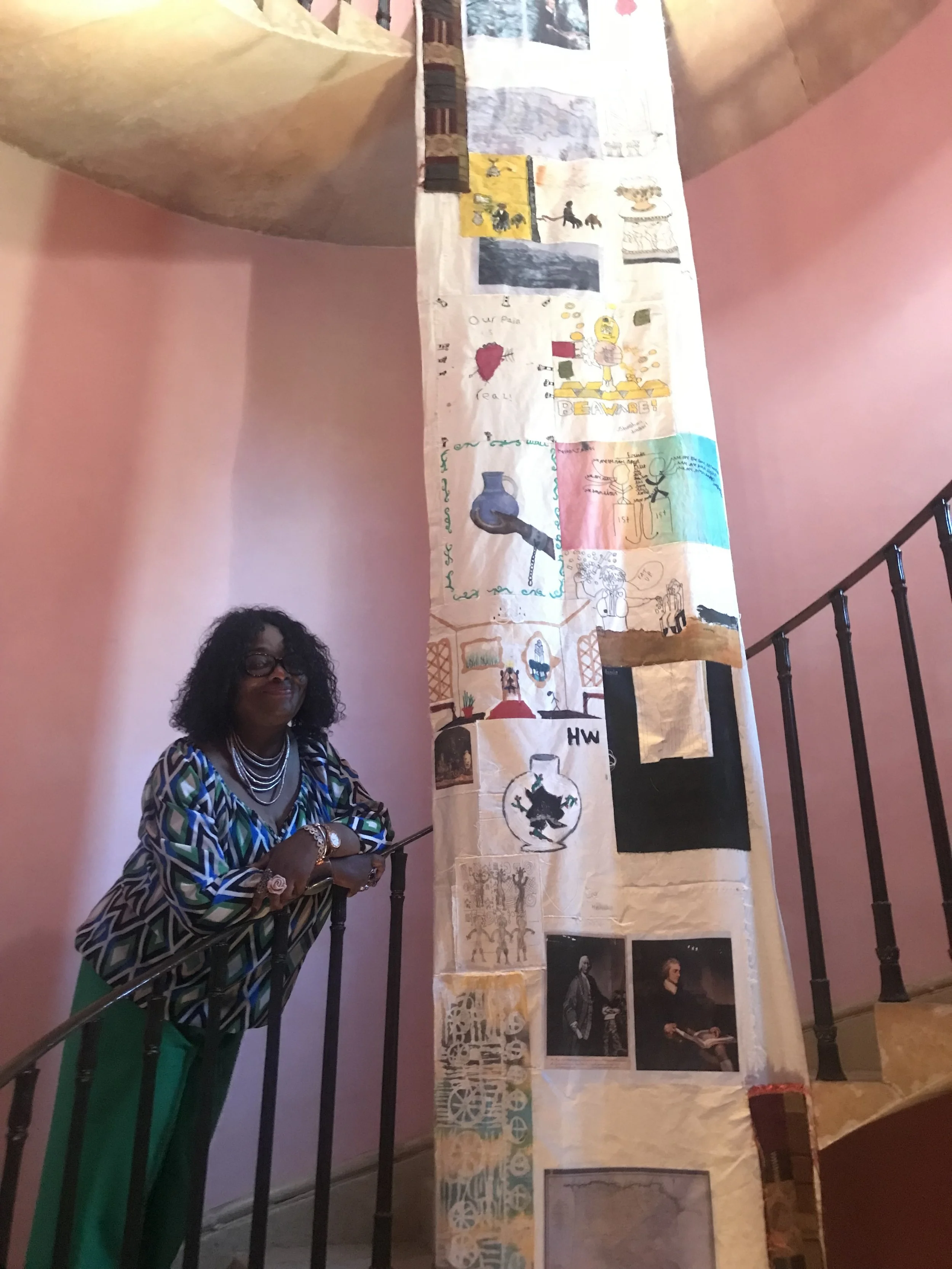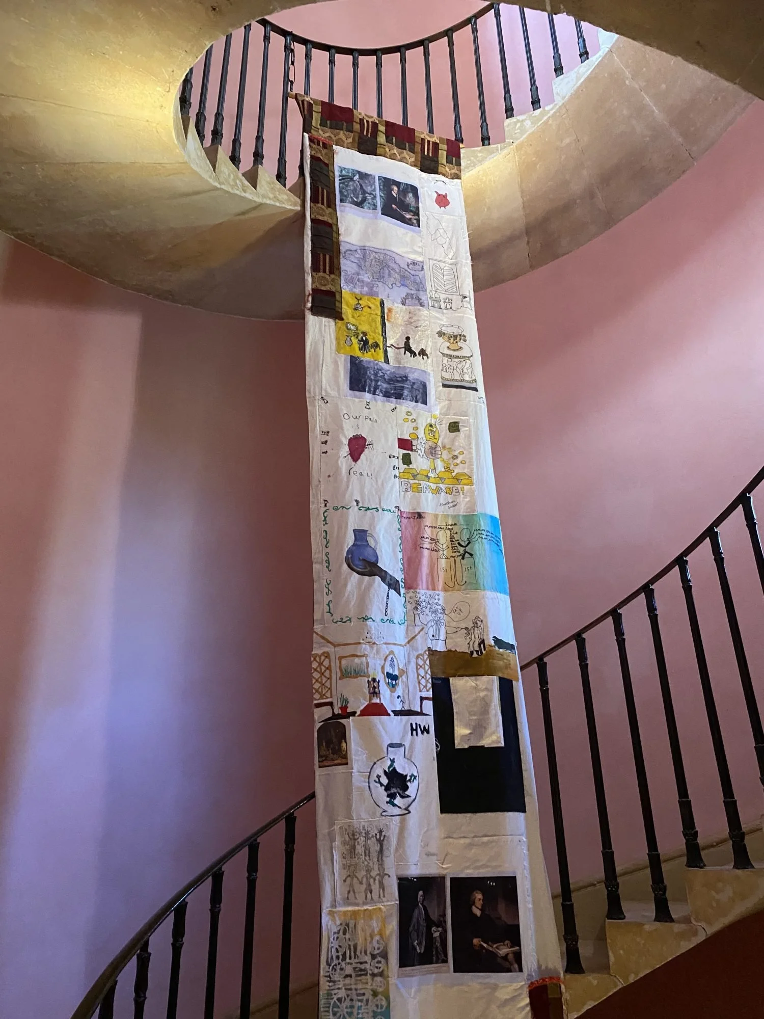 We work closely with cross-sections of our local community to ensure that our collections and displays are fully contextualised and sensitively interpreted. One such project has been the creation of this banner which now hangs in the Tower staircase. Young people from the Supplementary School programme run by Bath Black Families Educational Support Group have worked with artist Jacqueline Braithwaite to create artistic responses to the Tower and the story of William Beckford, which they then united together into the banner.